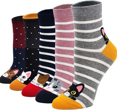 Aqueça os pés com estilo! 🐾 Pack de 5 Meias de Algodão confortáveis e térmicas, com estampas divertidas de gato! Um acessório must-have com avaliação 4.5 estrelas. Aproveite o MEGA DESCONTO de Black Friday e garanta o seu pack! Qualidade e fofura garantidas!