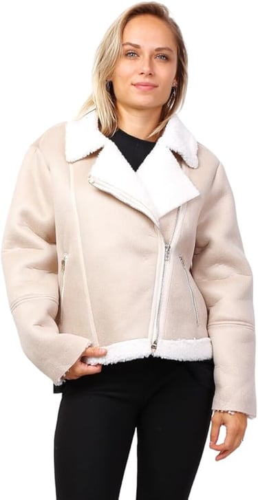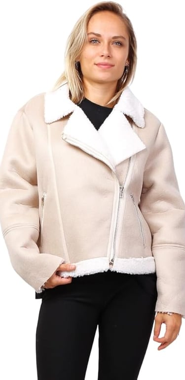 Casaco de Aviador Feminino essencial para um inverno quente e elegante. Design clássico, cor Bege, com forro polar para conforto máximo. Disponível em Tamanho Único (Regular Fit). Compre agora na Amazon e adicione esta peça versátil ao seu guarda-roupa!